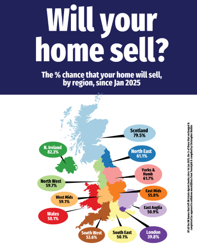 When a home goes on the market, not every one of them sells and the homeowner moves home. In fact, since January 2025, of the 1,236,316 UK homes that have left estate agents’ books across the UK, only 680,896 (or 55.1%) have actually sold and homeowner moved (ie exchanged and completed), with the rest 555,420 (44.9%) withdrawn unsold.
